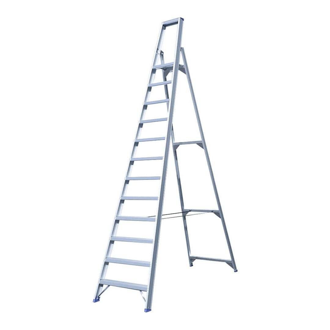 Deze Eurostairs bordestrap met 12 treden is perfect voor werkzaamheden binnen en buiten, en biedt een betrouwbare oplossing voor klussen op hoogte.