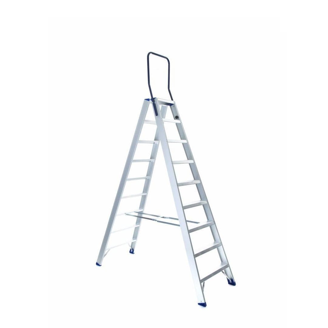 De Eurostairs dubbele trap met 9 treden is dé keuze voor professionals die kwaliteit en veiligheid zoeken. Vervaardigd uit hoogwaardig geanodiseerd aluminium, combineert deze trap een lichte constructie met uitzonderlijke stevigheid.